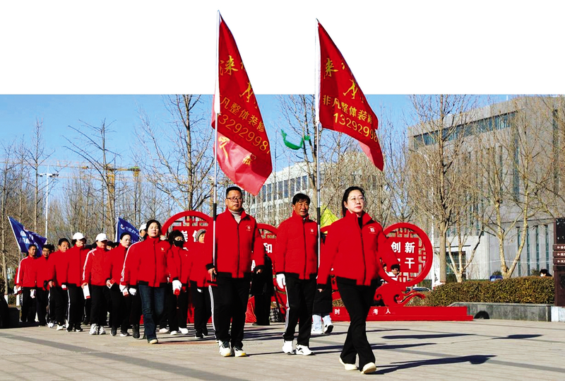 在涞水县聚秀公园活动现场,孙氏太极拳、少儿武术《武林风暴》、空竹彩带龙融合表演、毽球展示以及焦点舞蹈队的广场舞《我要找到你》轮番登场,健步走参与者沿健康步道列队行进,队伍绵延数百米,以运动的方式迎新年、启新程。