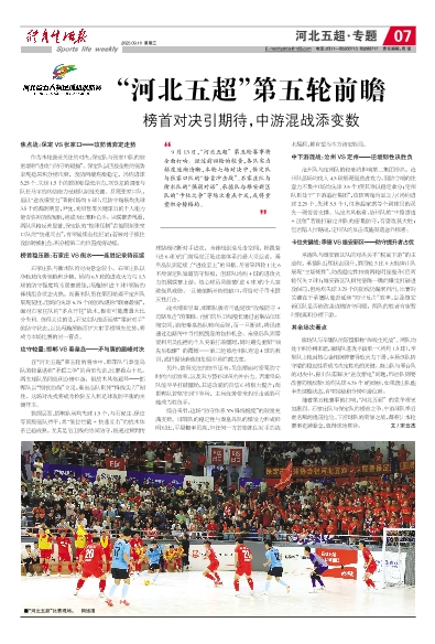 9月13日,“河北五超”第五轮赛事将全面打响。经过前四轮的较量,各队实力梯度逐渐清晰,本轮七场对决中,保定队与张家口队的“榜首冲击战”、石家庄队与衡水队的“强弱对话”、承德队与雄安新区队的“卡位之争”等场次看点十足,或将重塑积分榜格局。
