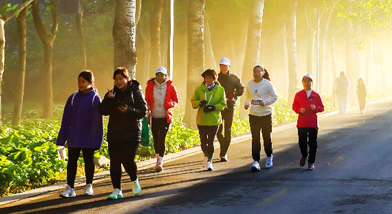 随着发令枪响,徒步爱好者们浩荡启程。行进队伍宛如一道道流动的彩虹,在秋日暖阳下徐徐铺展:绿道上,年轻人们三五成群,谈笑间步履轻快;亲子组合手牵手,孩子小脸上满是雀跃,稳稳跟着家长向前;老年徒步队举着鲜艳队旗,彼此高声鼓劲,步伐虽缓却坚定有力。此时的绿道沿线,层林尽染如打翻的调色盘,碧水含情似映着蓝天,漫步其间,仿佛亲手翻开一本页页绚烂的“秋日画册”,参与者在每一步中沉浸式感受石家庄的生态魅力,无论年龄、组别,都在这条绿道上找到了属于自己的节奏与风景。