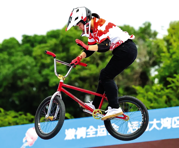 孙思蓓 第二金,10月25日,自由式小轮车女子公园赛在深圳市光明区虹桥公园小轮车场落幕。河北选手孙思蓓凭借精彩表现力挫群雄,以94.30的高分夺得冠军。