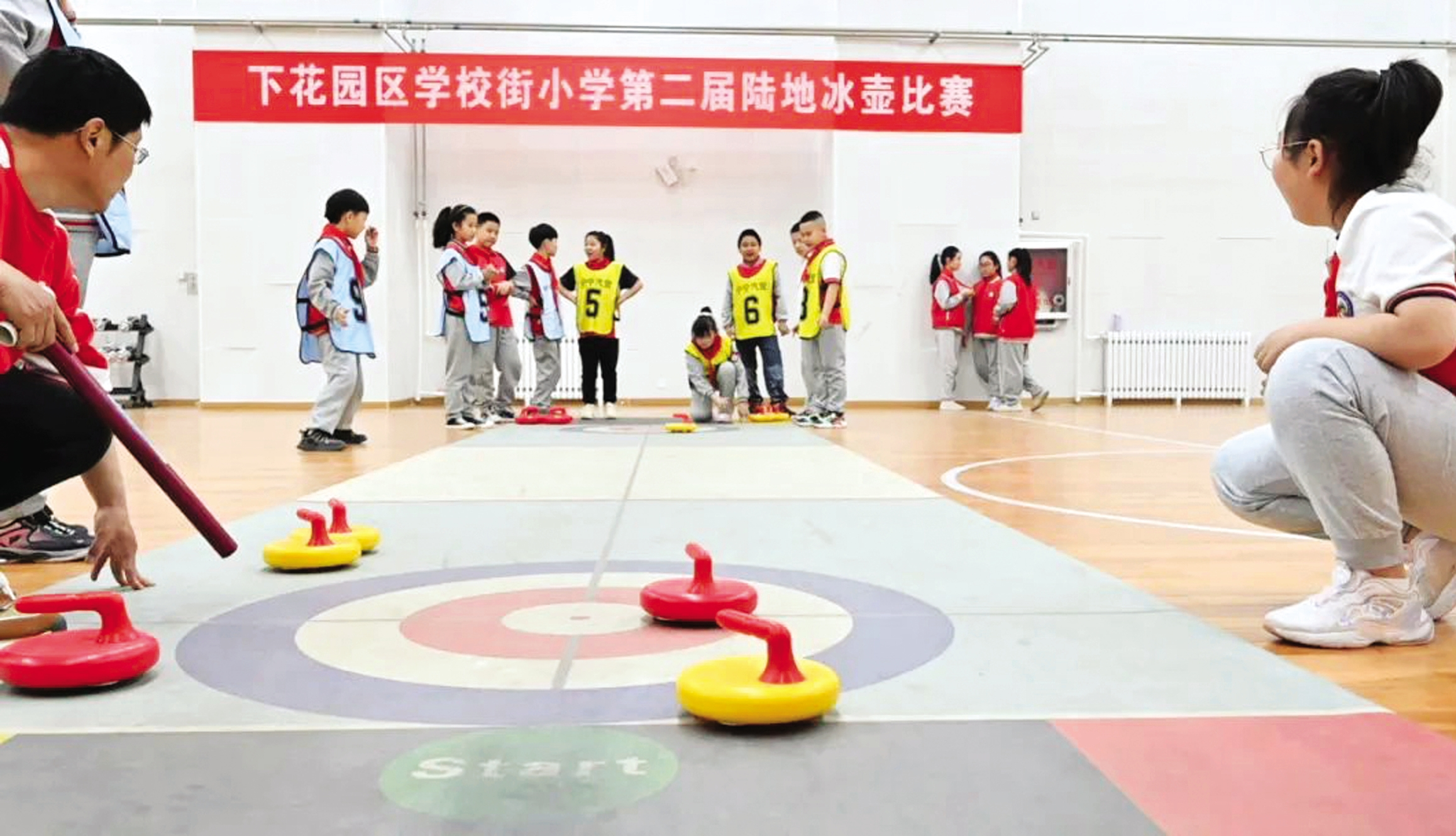 本报讯(记者 周强)近日,张家口市下花园区学校街小学举办了第二届陆地冰壶比赛,25名选手参加了比赛。本次比赛规则是每场两支队伍进行比赛,每支队伍4名队员,每场比赛共进行3局。两队每名球员均有两次掷壶机会,两队按一垒、二垒、三垒及主力队员的顺序交替掷壶,最后当双方队员掷完所有冰壶后,以场地上冰壶距离营垒圆心的远近决定胜负,三局积分多的队为胜。赛场上,选手们个个沉着冷静、全神贯注、默契配合,每一个动作都有板有眼,完美的掷壶,漂亮的旋转和击打,经过滑行、摩擦,最后落定。对阵双方斗智斗勇,精彩异常,场上选手们每一次的精准投壶都赢得了场上观众的热烈欢呼,队员们团结协作,生动诠释了“更高、更快、更强”的运动精神,展现了努力拼搏、健康向上的良好风貌。
