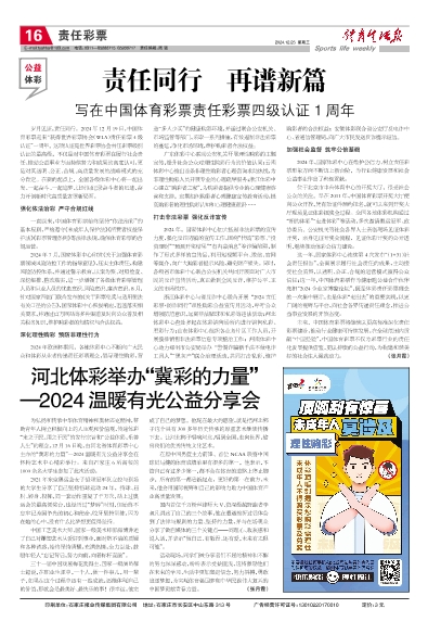 2024年,国家体彩中心在维护公信力、树立责任彩票形象方面不断迈上新台阶,为行业健康发展和社会公益事业作出了积极贡献。
