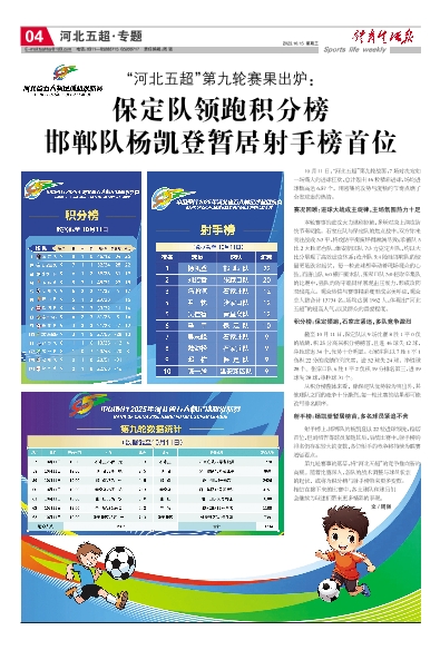 保定队领跑积分榜 邯郸队杨凯登暂居射手榜首位