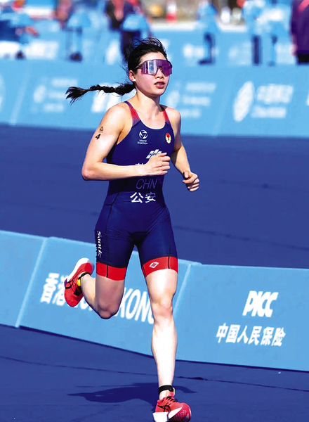 黄安琪 第十金,11月 15日上午,女子铁人三项比赛在香港结束,河北省与公安体协联合培养运动员黄安琪以1小时59分16秒的成绩成功卫冕,值得一提的是,本届全运会黄安琪的夺冠成绩比四年前的陕西全运会提升了近五分钟。